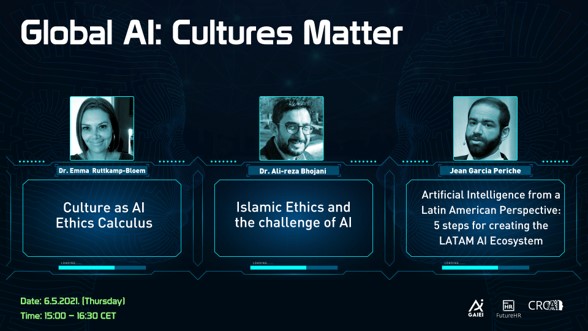 AI Ethics: Cultures Matter This second webinar addresses the question of global AI ethics from a critical perspective, stressing differences and commonalities and raising awareness on the importance of cultural diversity as stated in the UNESCO Universal Declaration on Cultural Diversity in 2001.